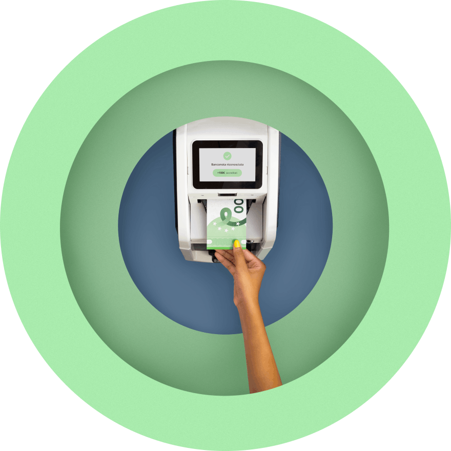 La cassaforte intelligente installata nel tuo punto vendita per versare il contante direttamente sul tuo conto corrente, semplicemente e in massima sicurezza.