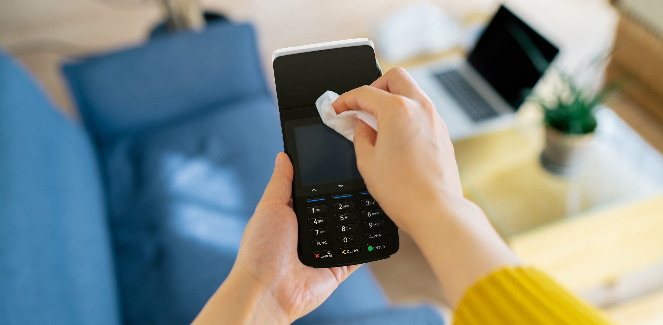 I terminali POS, come tutti gli oggetti usati da più persone, possono accumulare sporco velocemente. È consigliabile pulirli più frequentemente, per la tua sicurezza e quella dei tuoi clienti.